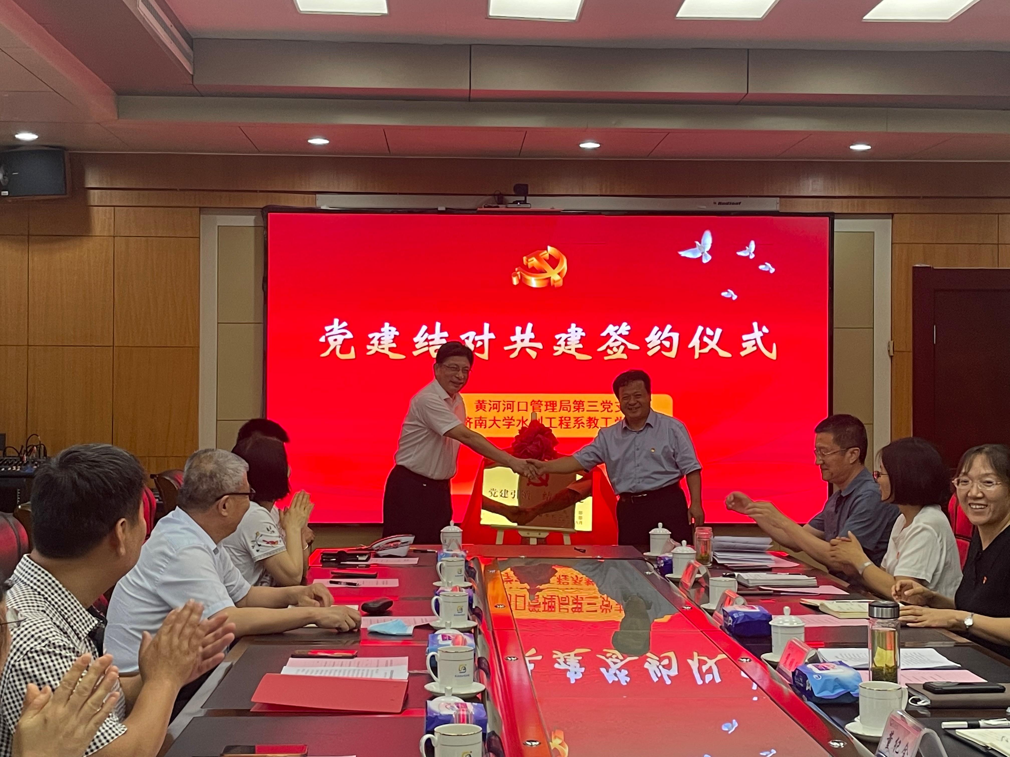 水利工程系教工党支部开展共建签约揭牌仪式。本次共建坚持“资源共享、优势互补、协同发展”的原则,旨在进一步提升党支部组织力,强化党支部政治功能,努力构建“开放、联动、融合”的基层党建工作新格局。通过共建共享,互助互促,找准共建着力点,打造过硬党支部,提升党支部服务保障、引领发展能力,为推动黄河流域生态保护与高质量发展贡献力量。
