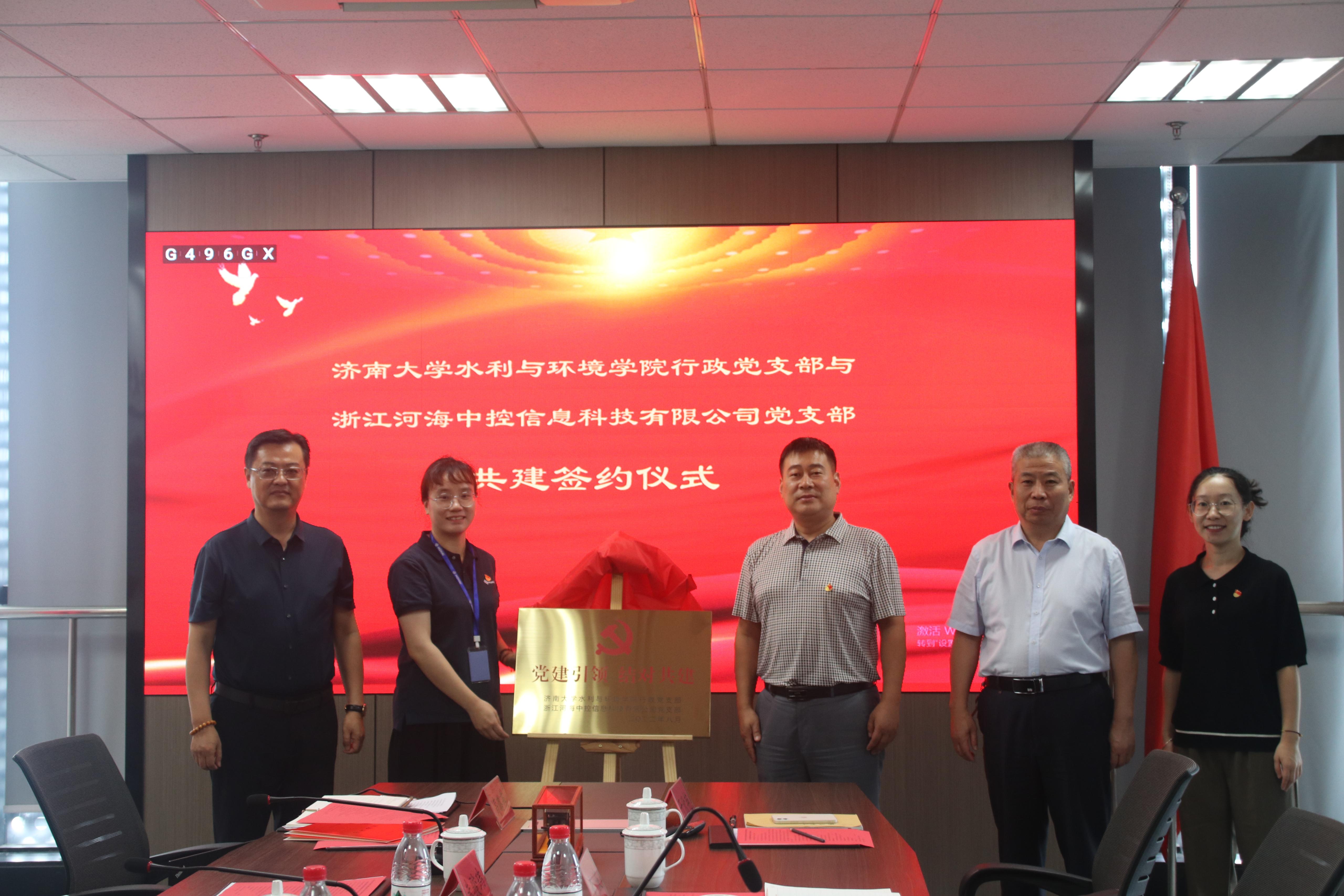 党委书记王义、院长徐征和及有关教师一行5人赴浙江河海中控信息科技有限公司开展合作共建活动,双方举行了“济南大学水安全研究院”揭牌暨党支部共建仪式。浙江河海中控信息科技有限公司董事长朱骏玮、总经办主任徐彬、党支部书记高璐燕等出席仪式。浙江省嘉兴市政协副主席、九三学社嘉兴市委会主委俞红平,浙江红船干部学院副院长、嘉兴市委党校副校长柴海生,九三学社嘉兴市委会专职副主委迮育彬等应邀出席活动。