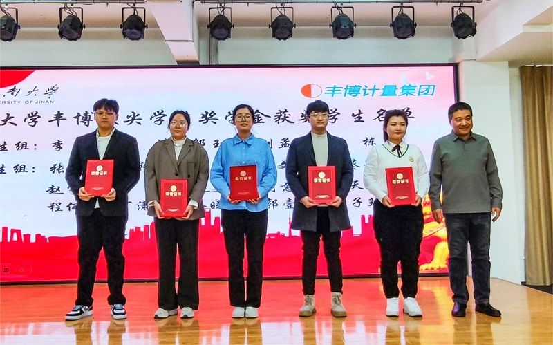 丰博计量集团自2022年至2024年共出资30万元设立济南大学丰博拔尖学生奖学金,旨在推动校企科技交流与创新型拔尖人才培养。本次奖学金评选,经过学生申报、资格审查、现场风采展示、评审委员会打分等环节,本年度最终评选出获奖人选20名。