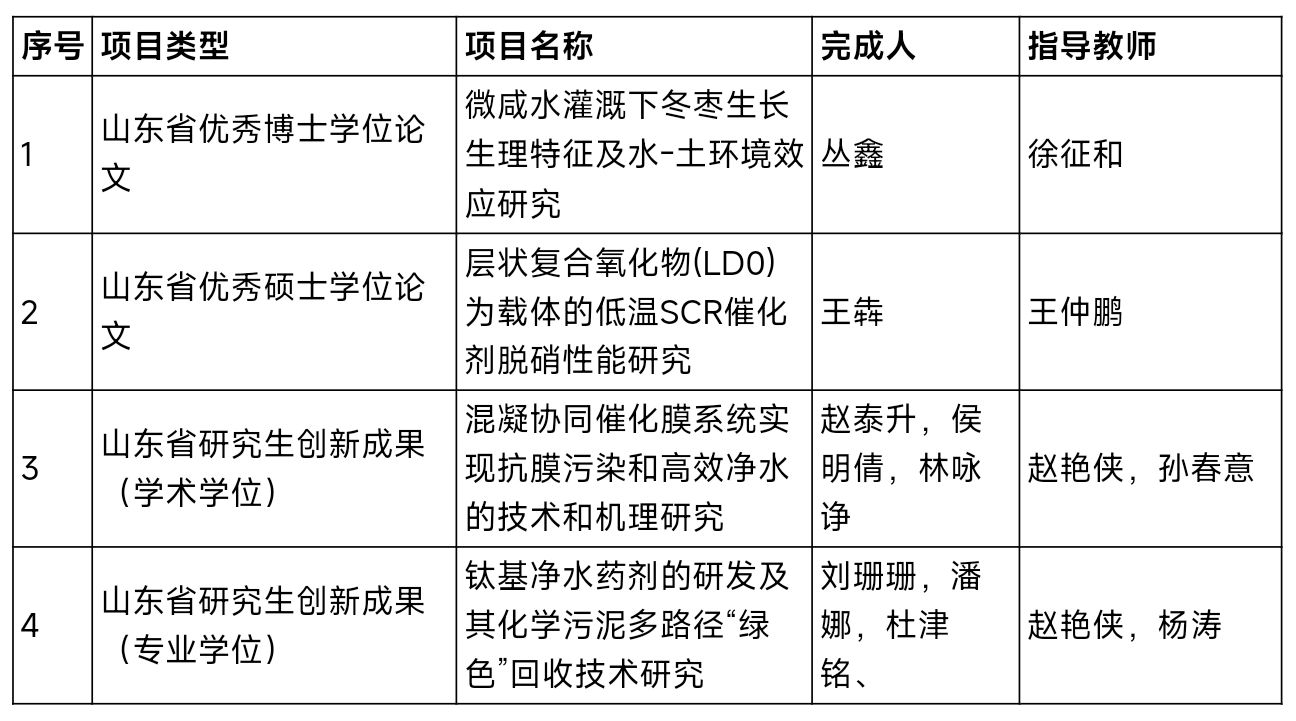 教育教学成果方面,学院获批山东省优秀博士学位论文1篇(指导教师:徐征和),山东省优秀硕士学位论文1篇(指导教师:王仲鹏),山东省研究生创新成果(学术学位)1项(指导教师:赵艳侠,孙春意),山东省研究生创新成果(专业学位)1项(指导教师:赵艳侠,杨涛);课程和教学案例建设方面,获批山东省研究生优质课程1项(负责人:潘维艳),山东省研究生优质专业学位教学案例库1项(负责人:何芳);教育教学改革方面,获批山东省研究生教育教学改革研究项目1项(负责人:刘玉玉)。相关成果为助力学院提升高水平人才培养质量,推动研究生教育高质量发展奠定了重要基础,标志着学院在研究生培养和教育教学资源建设方面迈出了更坚实的一步。
