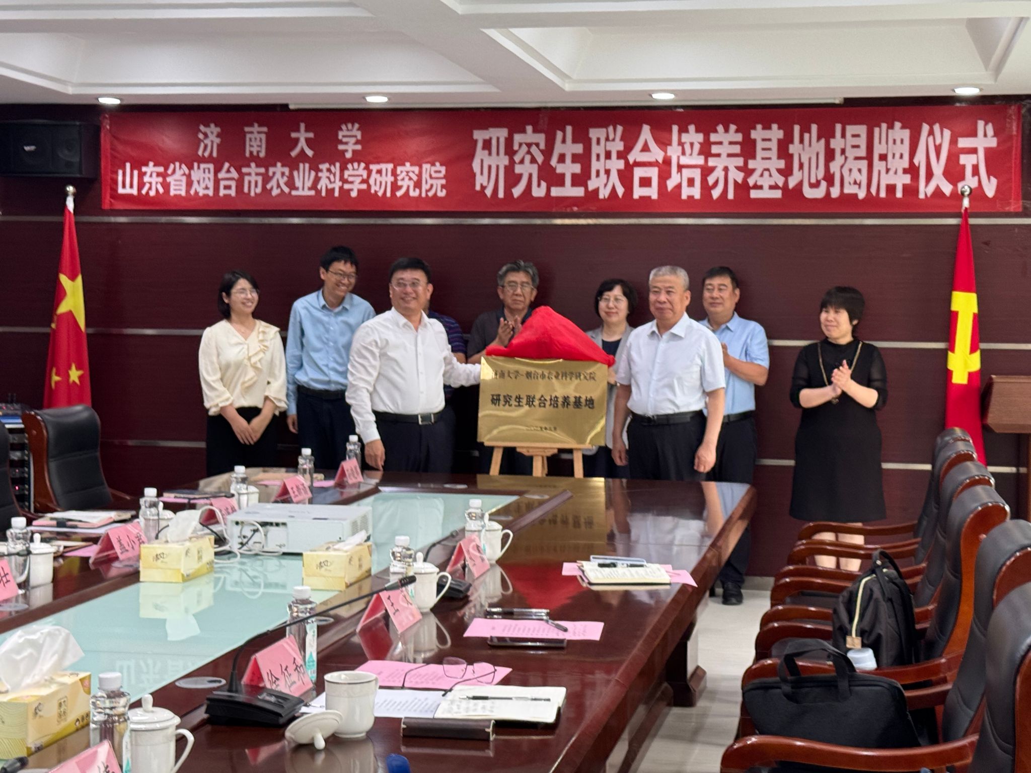 上午,校地双方在烟台市农业科学研究院隆重举行“济南大学研究生联合培养基地”揭牌仪式。烟台市农业农村局党组成员、副局长刘倩,烟台市农科院党委书记吴吉壮、党委副书记郭绪良等出席活动。