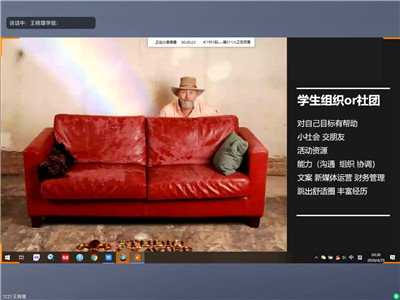 科创中心王翘楚、赵泉森主持此次论坛,环境工程2019届优秀毕业生王晓璐作为嘉宾向同学们分享相关经验。