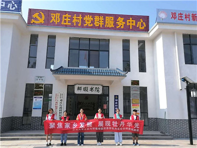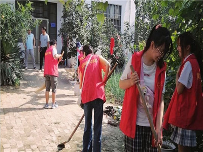 稍作休整,队员们又带着卫生工具来到贫困户的家中,队员们首先询问了贫困户和扶贫人员扶贫政策的落实情况,了解了村里自来水通水情况了解到邓庄村的自来水设施比较完备,扶贫政策也一一落实,村里更是用国家补贴的资金承办了种植大棚和养殖场来促进当地经济发展,队员们临走前帮农户们清理了杂草和垃圾,虽然天气有些炎热,但在大家的欢声笑语中很快就完成了任务。
