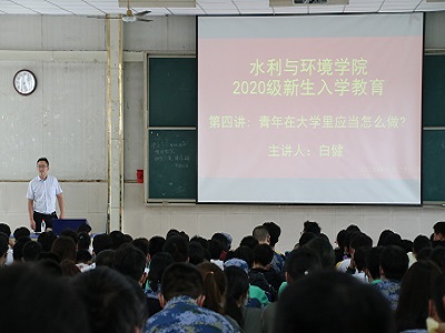 于星硕教室开展新生入学教育系列讲座之“青年在大学里应当怎么做”,本次讲座由2020级辅导员白健主讲,2020级新生班助及全体新生到场参加。