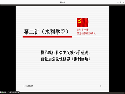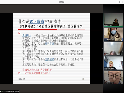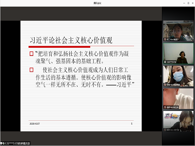 通过腾讯会议开展“模范践行社会主义核心价值观,抵制‘渗透’” 为主题的党课讲座,教育与心理科学学院党委书记牛瑞斌主讲。