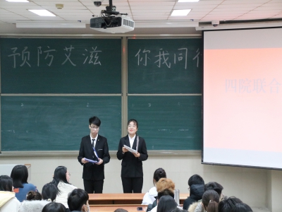 为提高广大学生对HIV病毒引起的艾滋病的认知,唤起当代大学生对艾滋病预防的重视,电竞博彩平台 、外国语学院、机械工程学院、信息科学与工程学院于12月13日周日晚19:00在第十一教学楼第一段401室联合举办了“预防艾滋,你我同行”防艾宣讲活动。