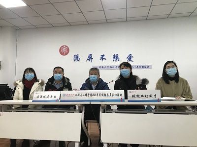 党委书记边健,院长徐征和,党委副书记张良红,辅导员高蓉蓉、刘孟頔、张通组成的家访活动工作小组通过网络进行线上家访。