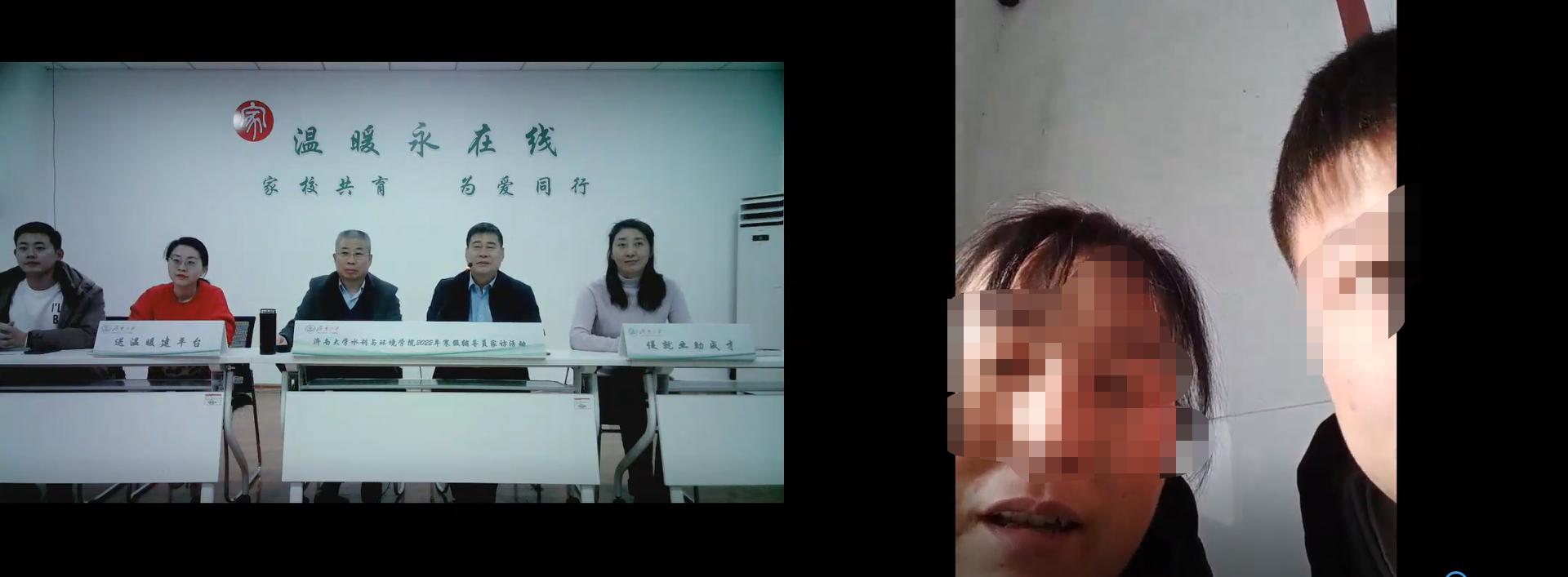 由于疫情原因,本次家访采取线上视频连线的方式。学院领导老师视频连线了宋同学、马同学,2021级辅导员张通老师向宋同学和马同学的家长介绍了学生的学习情况和在表现,以及学校、学院对学生的资助、帮扶情况。徐征和院长悉心询问了两位大一新生对大学生活的适应情况和期末考试情况,鼓励两名同学充分利用寒假时间充电学习,加强对学科专业的认识,进一步提升专业素养。王义书记在与家长的沟通中进一步了解了学生的家庭状况、成长环境,对家长关心的问题进行了解答,并积极征求家长对学院工作的意见建议。张良红副书记勉励学生自强自立,积极进取,并为两位同学及家人送上了新年的祝福。
