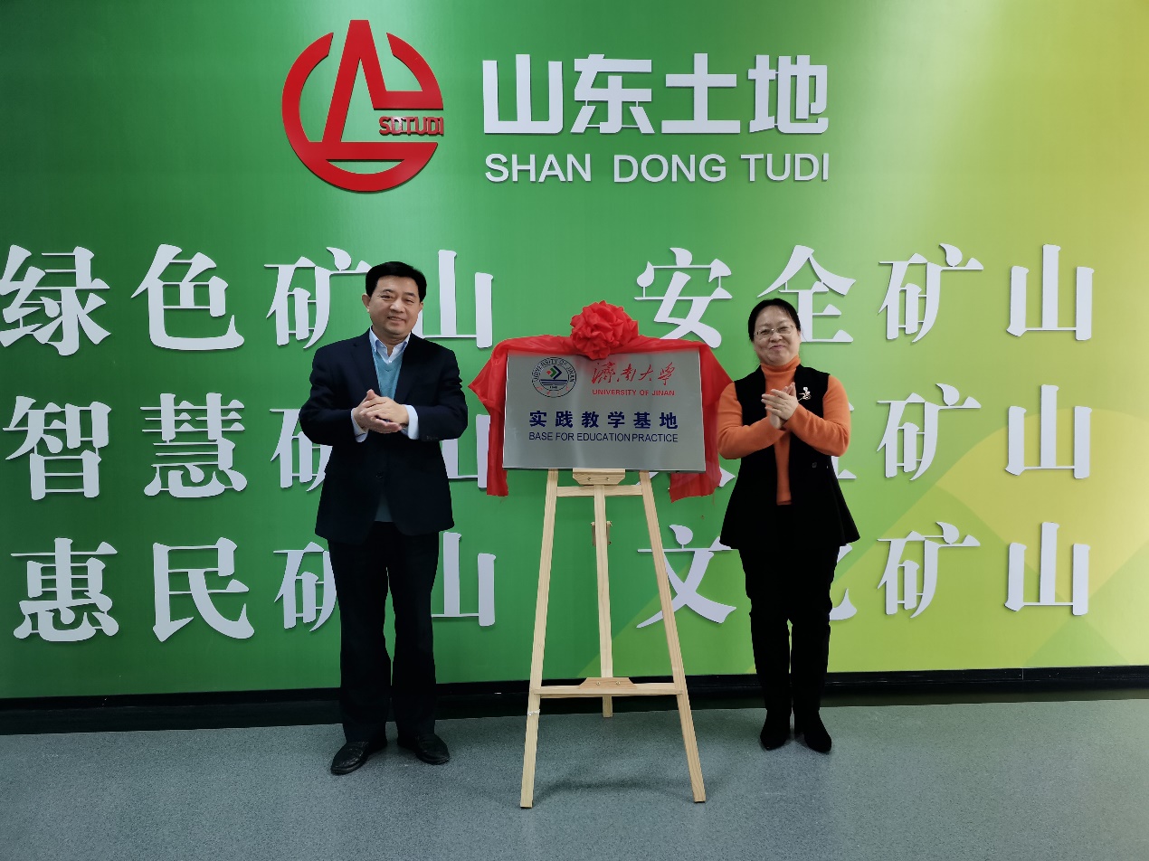 签约暨揭牌仪式上,庞桂斌副院长及牛昌敏董事长分别代表校企双方签署校企联合共建专业框架协议暨本科实践教学基地协议,济南大学教务处副处长兼师范教育管理办公室主任张婷及山东土地集团泰安有限公司董事长靳庆新为“济南大学本科实践教学基地”揭牌。