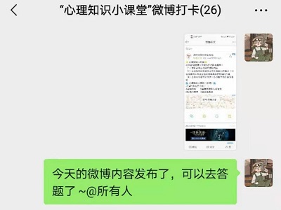 本次微博打卡活动普及了心理健康知识,增强了大学生的心理健康教育,提高了同学们适应社会生活的能力。通过本次活动,心理健康知识在广大学生中进一步普及,引导着学生关注自身发展,树立正确的价值观、人生观,同时也为学院的心理健康教育工作创造了一个良好的氛围。