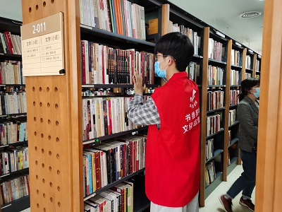 进入图书馆前,志愿者们都自觉将手机调至静音,安静进入图书馆。在图书管理人员的悉心指导下,志愿者们明确了属于自己的任务并开始了一天的工作。对图书的分类与整理是最基本的工作,它要求志愿者准确且快速地识别书籍内容。志愿者们按照要求对书架上的书进行整理以及对归还收集车内的书籍进行分类,以便管理人员进行下一步的工作。志愿者们全神贯注,不敢有丝毫放松。在阅览室的志愿者们帮助读者使用自助借还书籍的机器并帮助工作人员分插书籍。还有部分志愿者服务来馆读者,告知他们所寻书籍的位置,解答他们的疑惑。志愿者们各司其职,做事井井有条。最终,志愿者工作在下午五点进入尾声,一天的辛勤劳累让志愿者们受益匪浅。