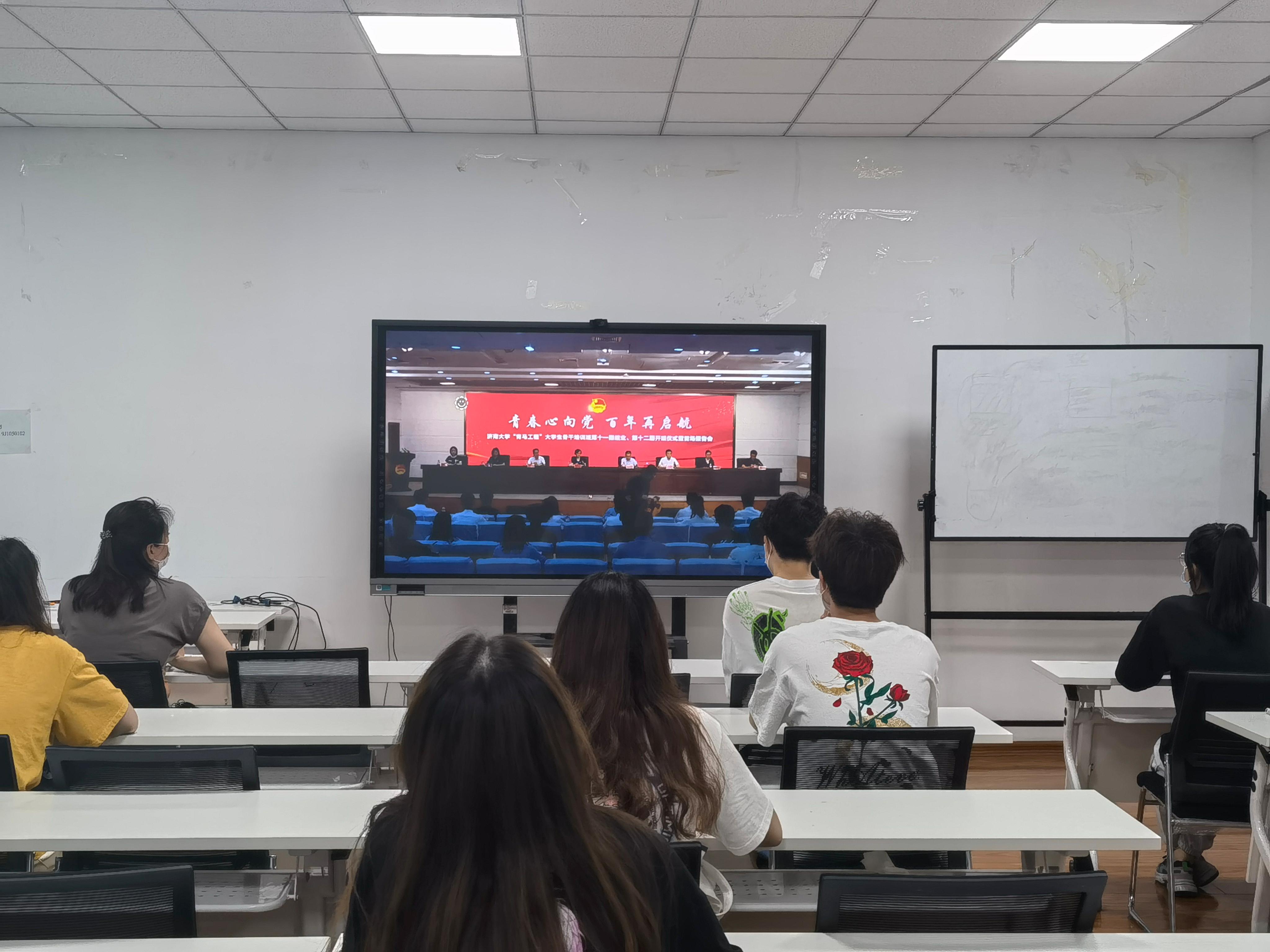 于6月9日在九教105组织“青马工程”第十一期、十二期大学生骨干培训班学员,收听收看以“青春心向党,百年再启航”为主题的“青马工程”第十一期结业暨第十二期开班仪式首场报告会。