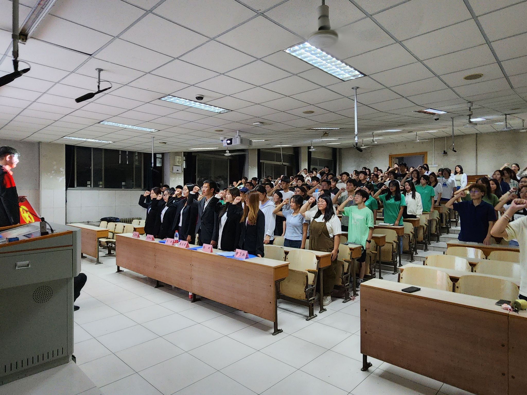 仪式主要分为四部分进行,第一部分,院学生会团建部成员杜沅润带领全体成员重温入团誓词。第二部分,《端正学习态度,锤炼个人修养》专题学习,由院学生会主席团成员燕浩景带领全体成员进行学习。通过专题学习帮助学员们提高学习能力,提升个人素质,为学员的成长和发展提供宝贵的指导和帮助。第三部分,《学习党史国情,坚定责任担当》专题学习,由院学生会主席团成员梁子酥引导成员们进行学习。梁子稣鼓励学员们深入了解中国共产党的发展历程。学习党史,学员们可以更好地理解党的宗旨和初心,从而增强对党的信仰和忠诚。第四部分,《学习重要讲话,践行时代精神》专题学习,由院学生会主席团成员马婧领学,在此环节中,成员在更好地理解和把握时代精神的同时,学习热情也得到了激发。