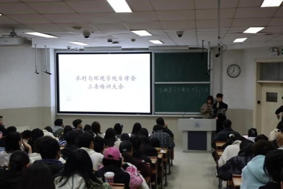 于第十一教学楼1段102召开课堂和宿舍检查培训大会,学院全体班长,团支书及各宿舍长参加本次会议。