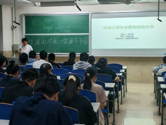 首先,环境类专业优秀学子进行分享。赵宇航结合自身经历,分享了保研时间线,她认为绩点与英语在保研中起到重要的作用,并介绍了在保研复试中常见的考核内容和注意事项。怀兰坤主要分享了保研方面的准备事项。如在保研院校选择方面,建议综合评估报考院校专业优势、地理位置、个人规划等因素,做出科学决策。丁姝羽分享了跨考马克思主义理论专业研究生的相关经验,她表示考研成功的关键在于制定符合个人实际情况的备考策略。建议同学们客观评估自身基础和学习能力,选择适合的目标院校。同时,备考期间要注重学习效率而非单纯堆砌时间,保持规律作息和适度放松才能持久作战。