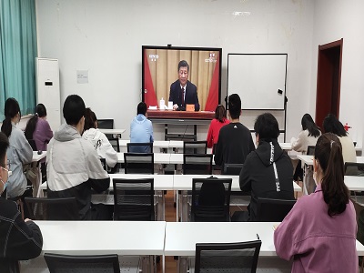 本次活动采用线上线下相结合的方式进行。一方面,学院在严格落实疫情防控要求的基础上,学院领导同团员干部、学生会组织工作人员、青年学生代表于第九教学楼105会议室集体收看现场直播。与会人员聚精会神,认真聆听习近平总书记的重要讲话,并记录重要内容,进一步加深对习近平总书记重要讲话精神的领悟和理解。另一方面,合理安排学院其他学生,以团支部为基本单元开展线上直播的观看学习,并发表个人感悟。