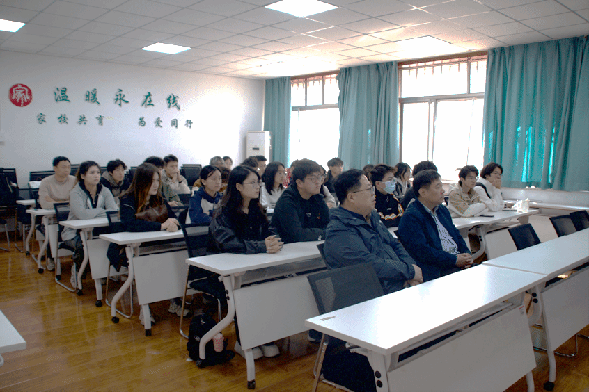 党委书记王义、学院院长王仲鹏在9教105室与师生代表一同收看了网络直播。
