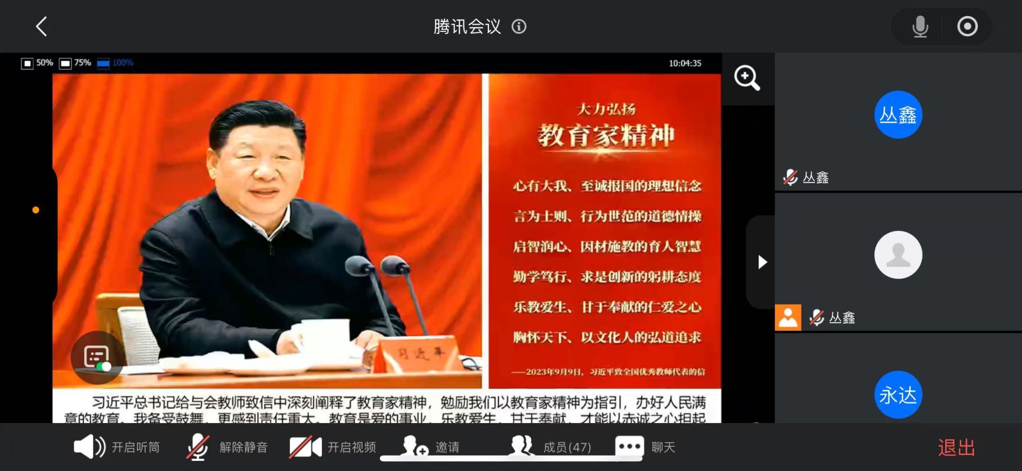 组织学院全体教师、地理师范类学生线上集中收看山东省举办的“弘扬教育家精神”宣讲活动.
