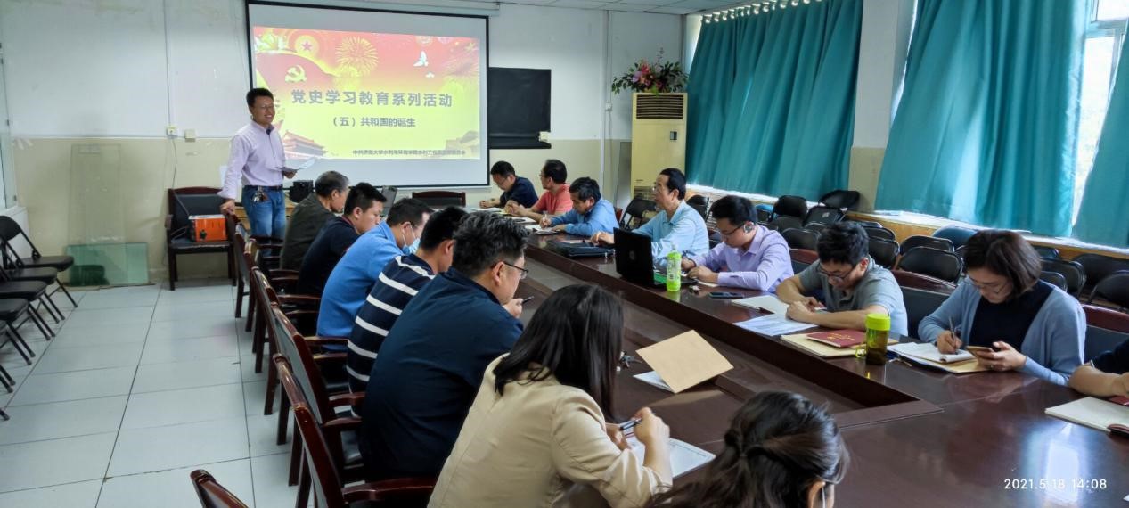 水利工程系党支部于2021年5月18日在9教301室召开党支部全体党员大会,开展第五次党史学习教育活动。会议由水利工程系党支部书记边振主持。