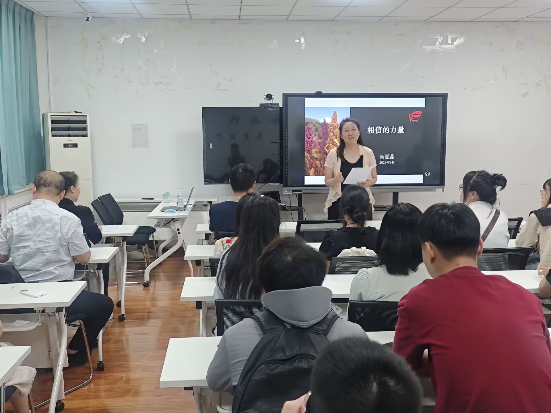 吴夏蕊博士的报告紧扣“学术创新”与“创业实践”双主线。她结合自身经历,分享了返乡宁夏后,运用藜麦种植技术改良盐碱地的前沿学术成果,并详细阐述了如何将科研成果转化为推动盐碱地作物培育与产业发展的成功路径。报告中,吴博士着重强调了夯实学业基础、勇于直面挑战的重要性,深情号召青年学子心系家国、情牵民生,在创新创业的实践中坚定信念、深耕不辍。整场报告内容详实、逻辑清晰,既有可操作性强的实践方案,更以真挚情怀传递出强大感染力,为现场师生带来深刻启迪与奋进力量。