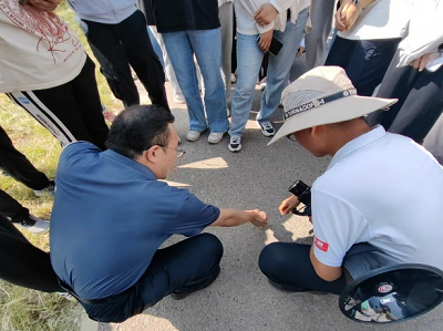 在玉符河沿线开展了济南典型泉水补给带的实习。带队教师结合馒头山与华山地质岩层特点,讲解了济南泉水形成与补给原理,让学生熟悉不同地质年代典型岩层的透水储水特性,更深刻的理解了大气降水、地表水、地下水三水转化关系。