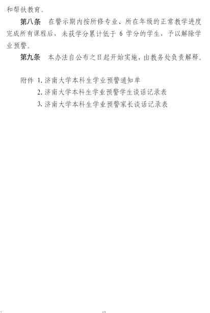 20170326济大校字〔2016〕225号-济南大学本科生学业预警管理办法