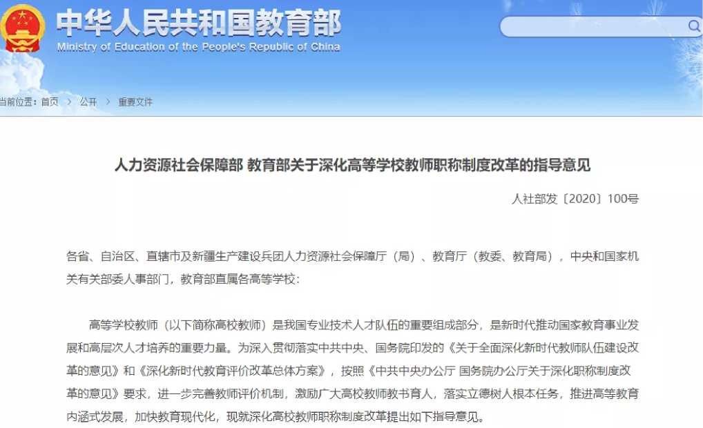 人力资源社会保障部教育部关于深化高等学校教师职称制度改革的指导意见
